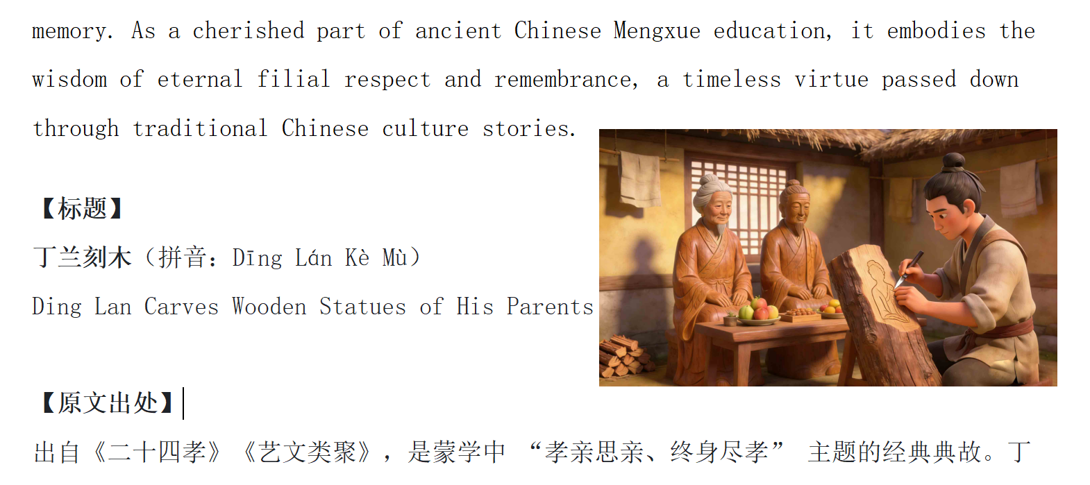 “Ding Lan Carves Wooden Statues” – A classic Chinese mengxue idiom story about eternal filial respect and remembrance for parents. Perfect for global learners exploring Chinese culture.