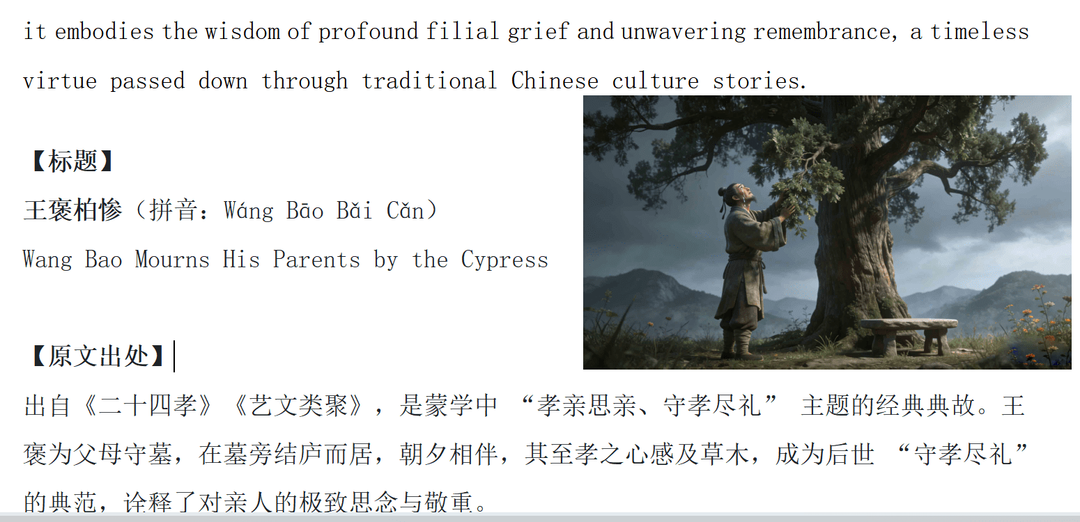 “Wang Bao’s Mourning Cypress” – A classic Chinese mengxue idiom story about profound filial grief and remembrance for parents. Perfect for global learners exploring Chinese culture.
